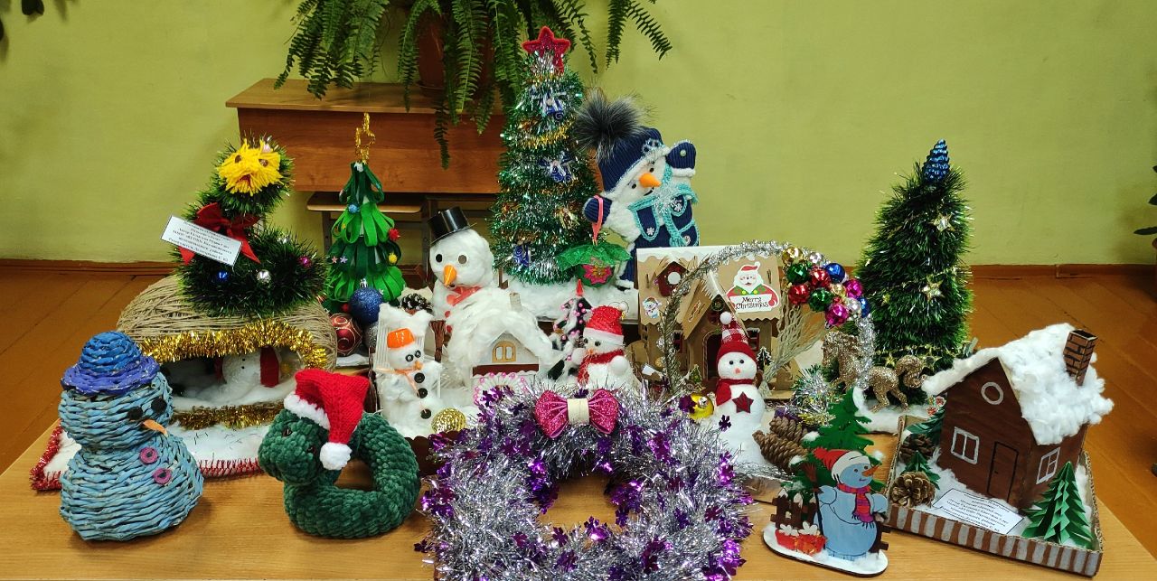 К новогодним и рождественнским праздникам воспитанниками Дома творчества были изготовлены: сказочные домики, зелёные ёлочки, забавные снеговики и яркие игрушки на ёлку.