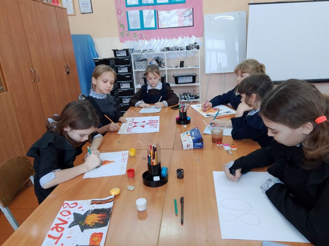 Воспитанники объединения "Радуга красок" готовятся ко Всероссийскому конкурсу детского рисунка "Жизнь, делённая на граммы", посвященному 80-летию победы советского народа в Великой Отечественной войне